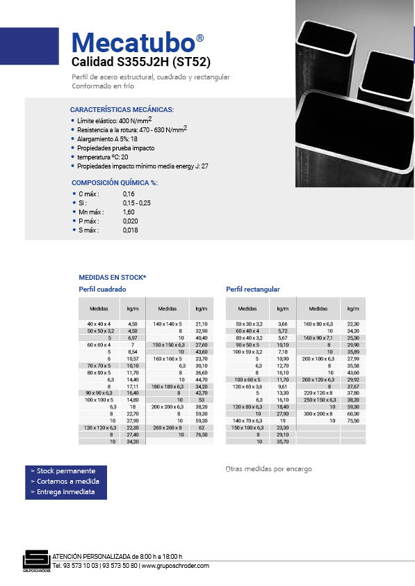 CARACTERÍSTICAS MECÁNICAS ACERO AL CARBONO PARA ESTRUCTURAL MECATUBO: