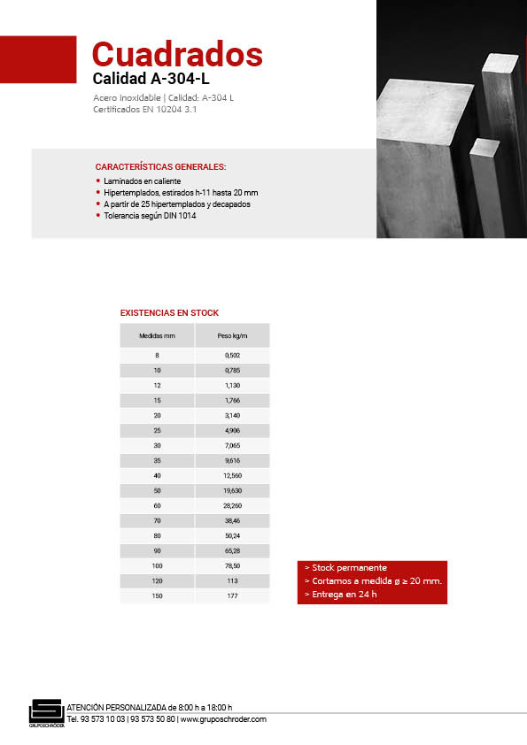 Aceros inoxidables: Cuadrados