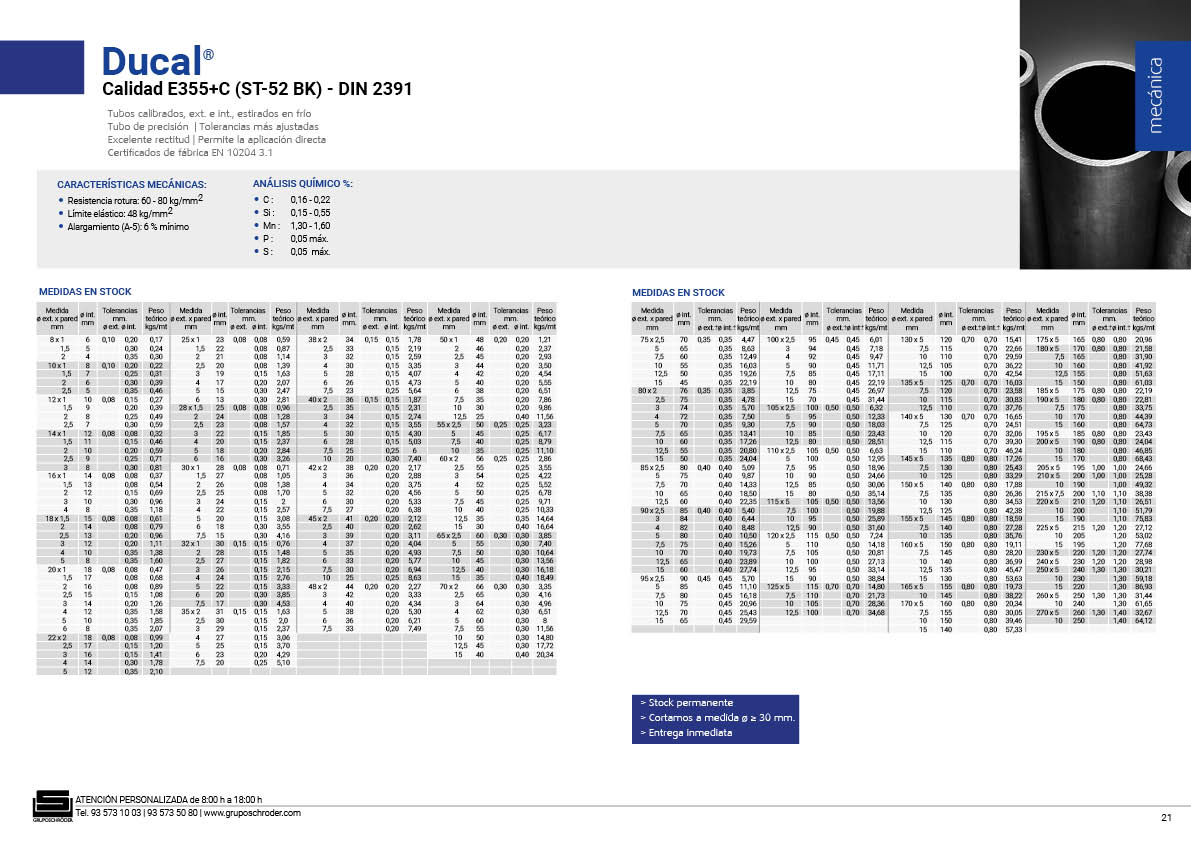 - Calidad E-355 (St-52) – DIN 2391 – BK