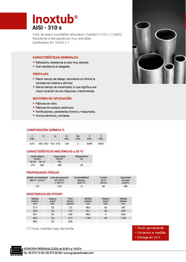 Tubo de acero inoxidable refractario | Calidad A-310 s |